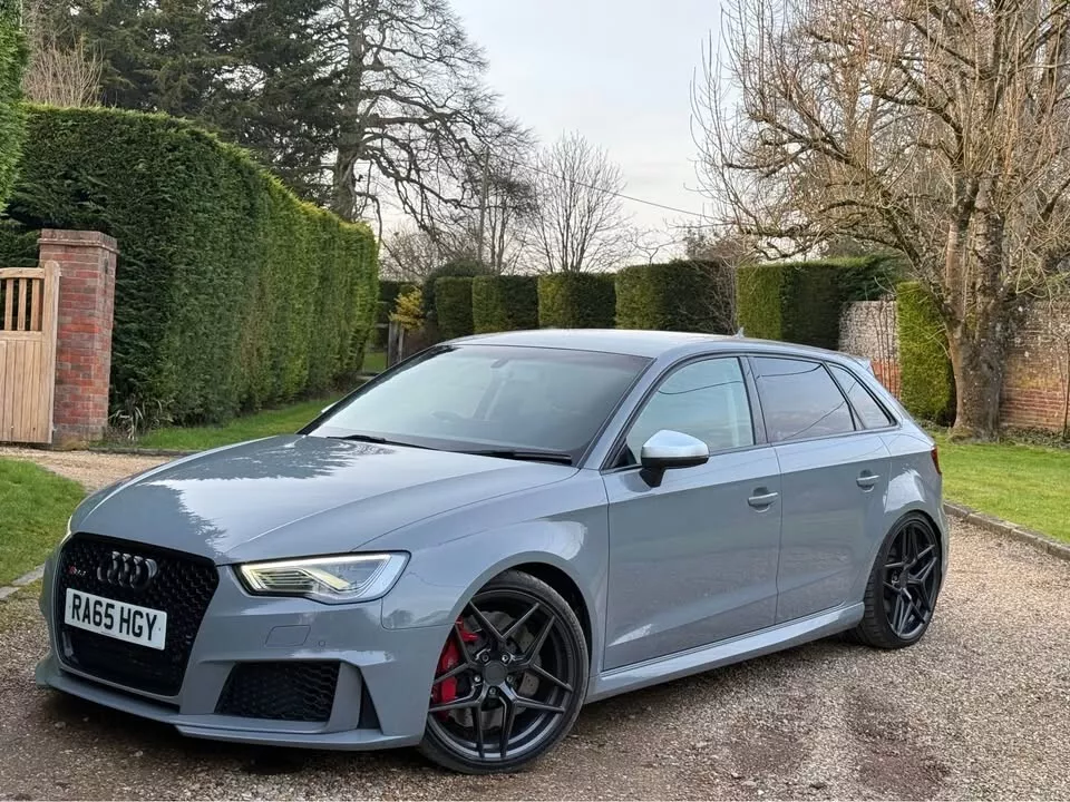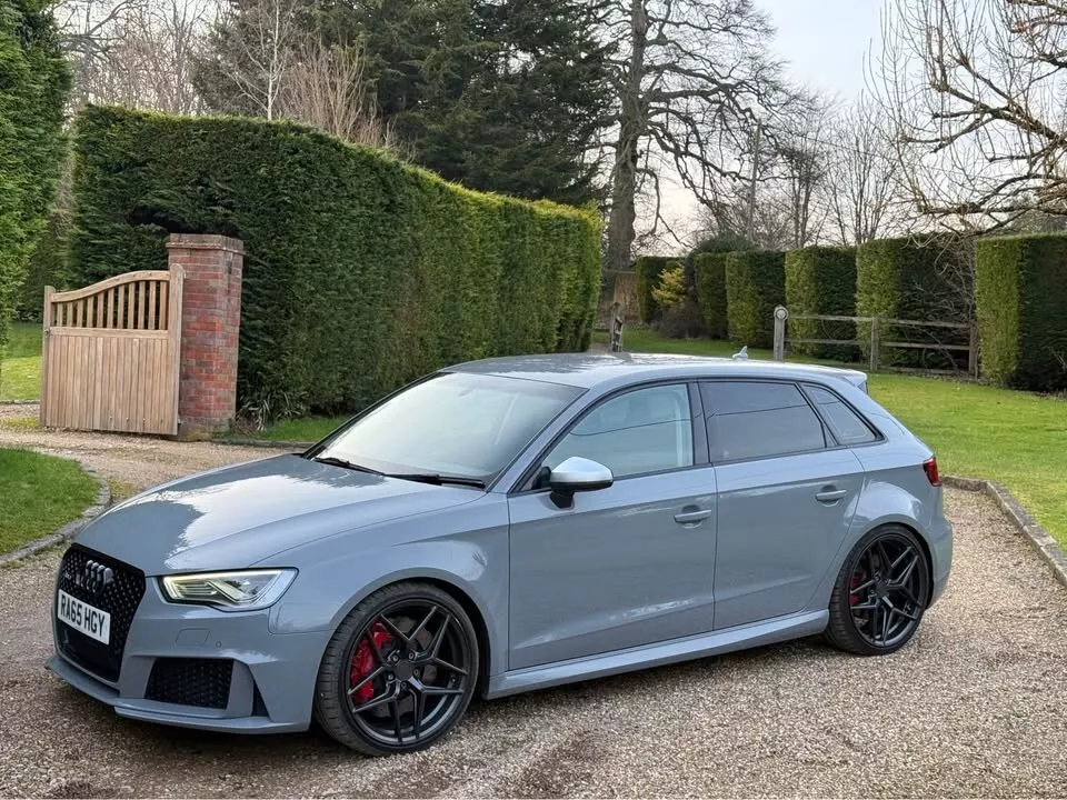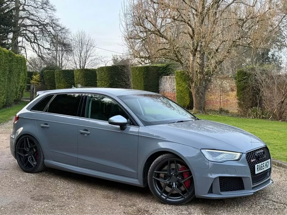 STUNNING AUDI RS3, FINISHED IN NARDO GREY, GENUINE 79,000 MILES, ONLY 1 OWNER FROM NEW, FULL SERVICE HISTORY, ORIGINAL AUDI BOOKLETS & MANUAL, HPI CLEAR,TIMING CHAIN DONE, HIGHLY MAINTAINED EXAMPLE, CHERISHED FROM NEW, IMMACULATE EXAMPLE IN & OUT, NO EXPENSE SPARED, X2 KEYS, MOT TILL NOV2025! 2.5 TFSI QUATTRO, S TRONIC, STAGE 2 450BHP MRC TUNED (INVOICES PRESENT OVER £7000 SPENT) SWITCHABLE MAPS, KW HEIGHT ADJUSTABLE SETUP WITH MAG RIDE, UPGRADED HIGH PRESSURE FUEL PUMP, RACING PLUGS, UPRATED INTERCOOLER, DECAT DOWNPIPE, STAGE 2 GEARBOX MAP, EXCELLENT POWER & PERFORMANCE, SOUNDS PHENOMENAL, NO ERRORS OR FAULTS, IMMACULATE CONDITION HIGH SPECIFICATION: 3 STAGE HEATED SEATS BANG & OLUFSEN SPEAKERS RS SPORTS EXHAUST MILLTEK DECAT FRONT & REAR PARKING SENSORS CRUISE CONTROL AUDI ADAPTIVE LIGHTS BLUETOOTH AM/FM/DAB/USB CONCAVE ALLOYS WITH NEW MICHELIN PS4s ALL AROUND + SO MUCH MORE